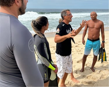 BodySurf Rescue: Noções Básicas de Salvamento Aquático. Este curso visa capacitar os alunos a lidar com situações desafiadoras no mar e a prestar ajuda de forma segura a outras pessoas. Durante o curso, os participantes aprendem técnicas essenciais para lidar com emergências aquáticas, garantindo uma intervenção eficaz e segura em momentos críticos.
