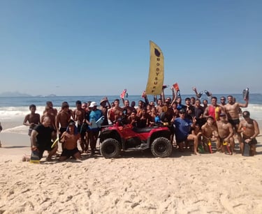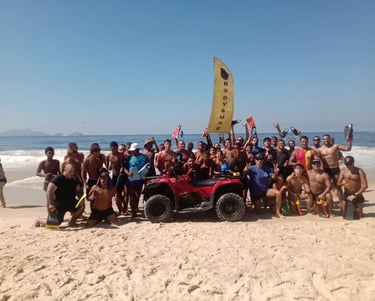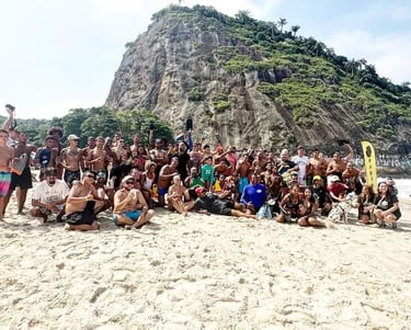 Praia do Leme - 07 de Abril de 2024 . Segundo encontrão do ano, tivemos surf treino, gincanas, mutirão de limpeza. Público 80 pessoas.
