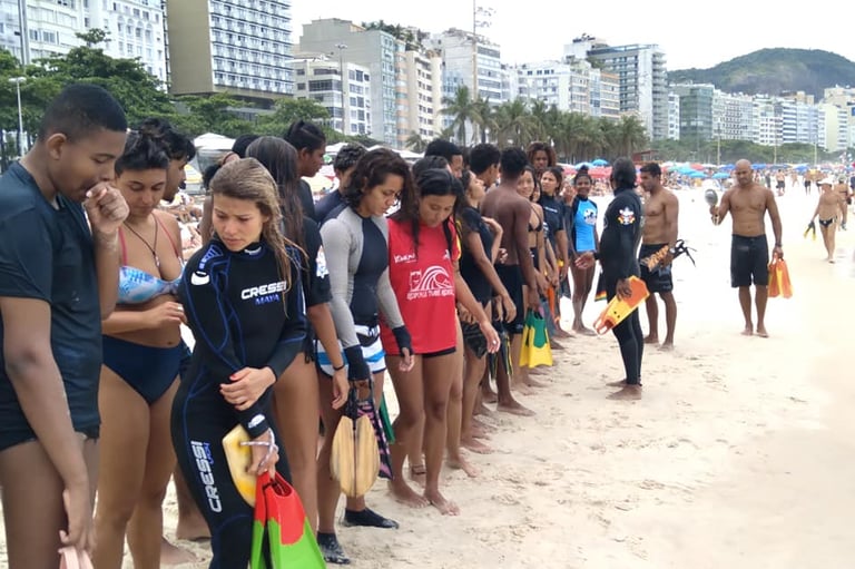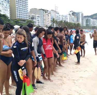 Praia do Copacabana Posto 5 - 05 de Maio de 2024 . Terceiro encontrão do ano, tivemos surf treino, conversa salvamento aquático. Público 50 pessoas.